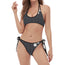 Black And White Mechanic Pattern Print Halter Scoop Tie Side Bikini