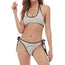 Black And White Mechanic Pattern Print Halter Scoop Tie Side Bikini