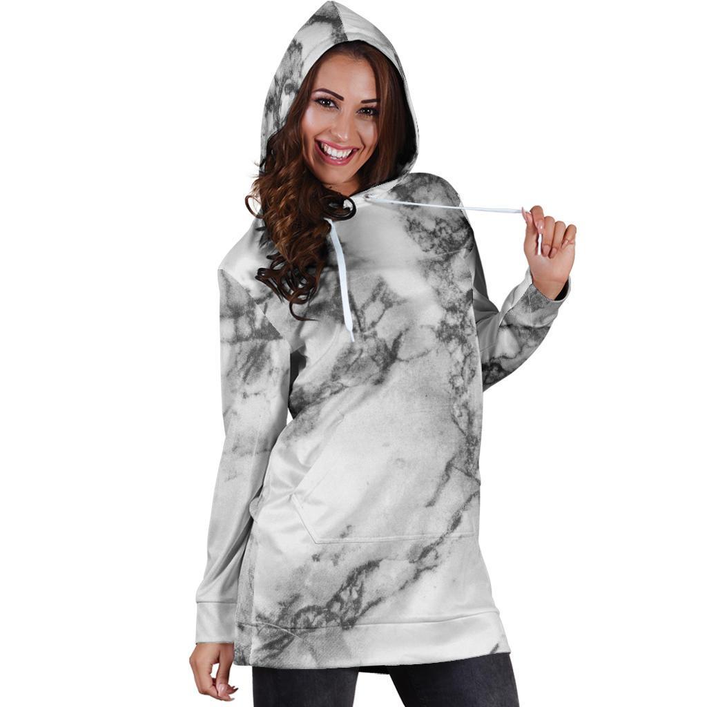 Are you looking for unique hoodie dresses? Check our White Dark Grey Marble Print Pullover Hoodie Dress on GearFrost. Our hoodie dresses are handcrafted to the highest quality standards and made-to-order for you!