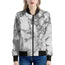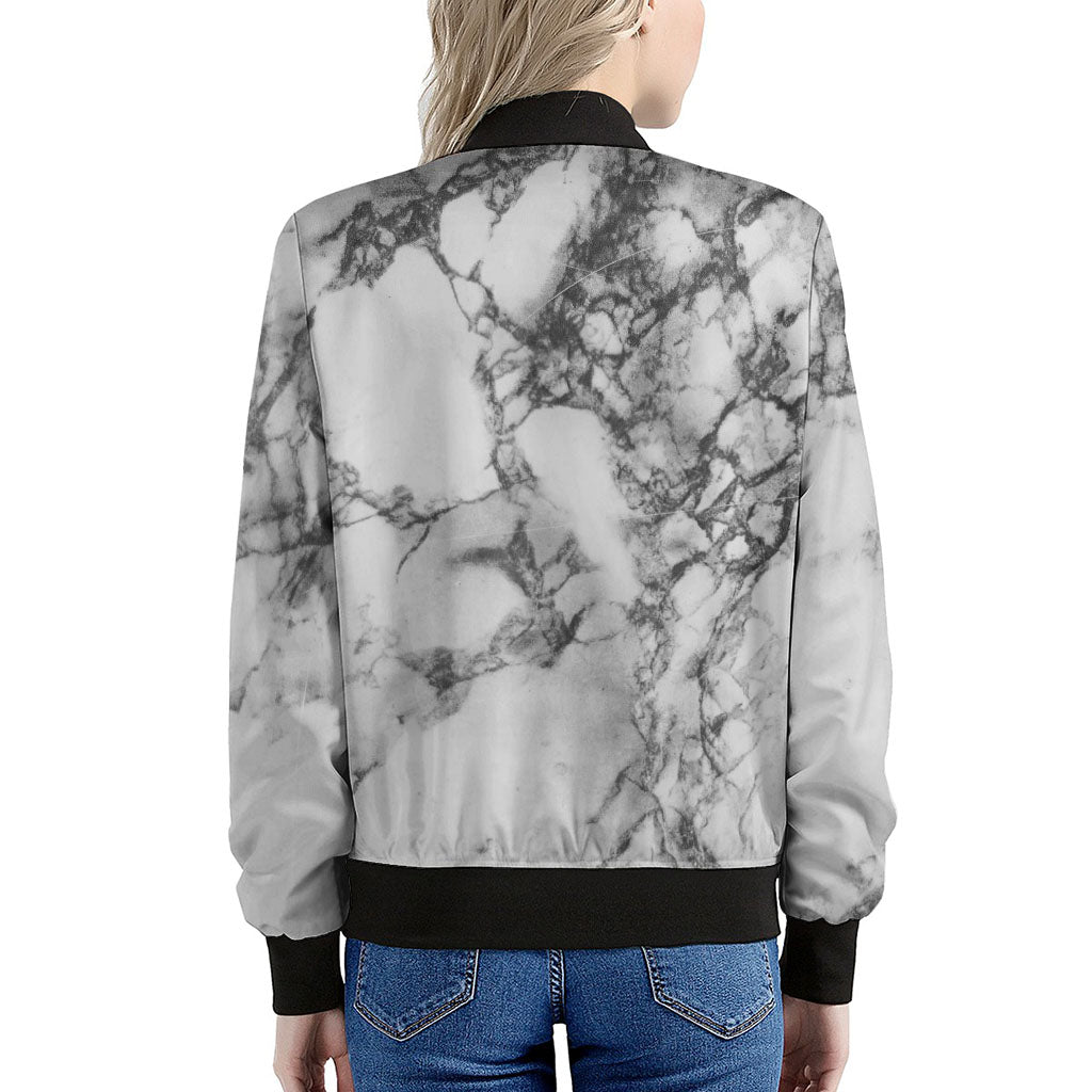 Make a bold statement with the sleek and stylish White Dark Grey Marble Print Women's Bomber Jacket. This women's bomber jacket combines a classic silhouette with modern design, offering the perfect mix of fashion and functionality. Whether you're layering it for a chilly day or adding a finishing touch to your outfit, this jacket is designed to keep you comfortable while elevating your style.