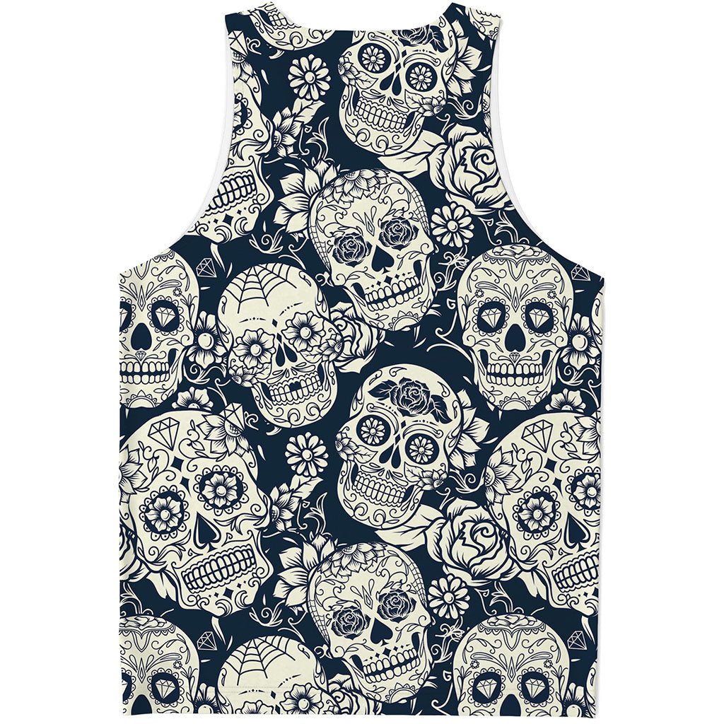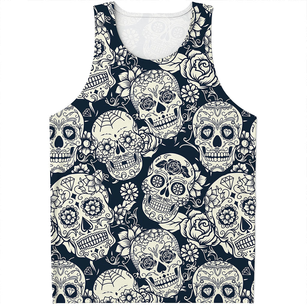 Are you looking for unique tank tops? Check our White Floral Sugar Skull Pattern Print Men's Tank Top on GearFrost. Our tank tops are handcrafted to the highest quality standards and made-to-order for you!