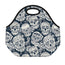 White Floral Sugar Skull Pattern Print Neoprene Lunch Bag