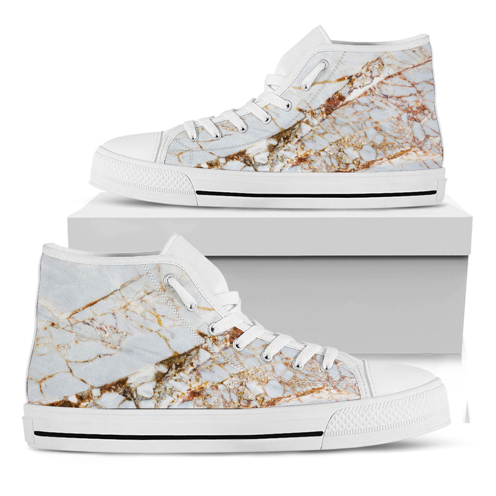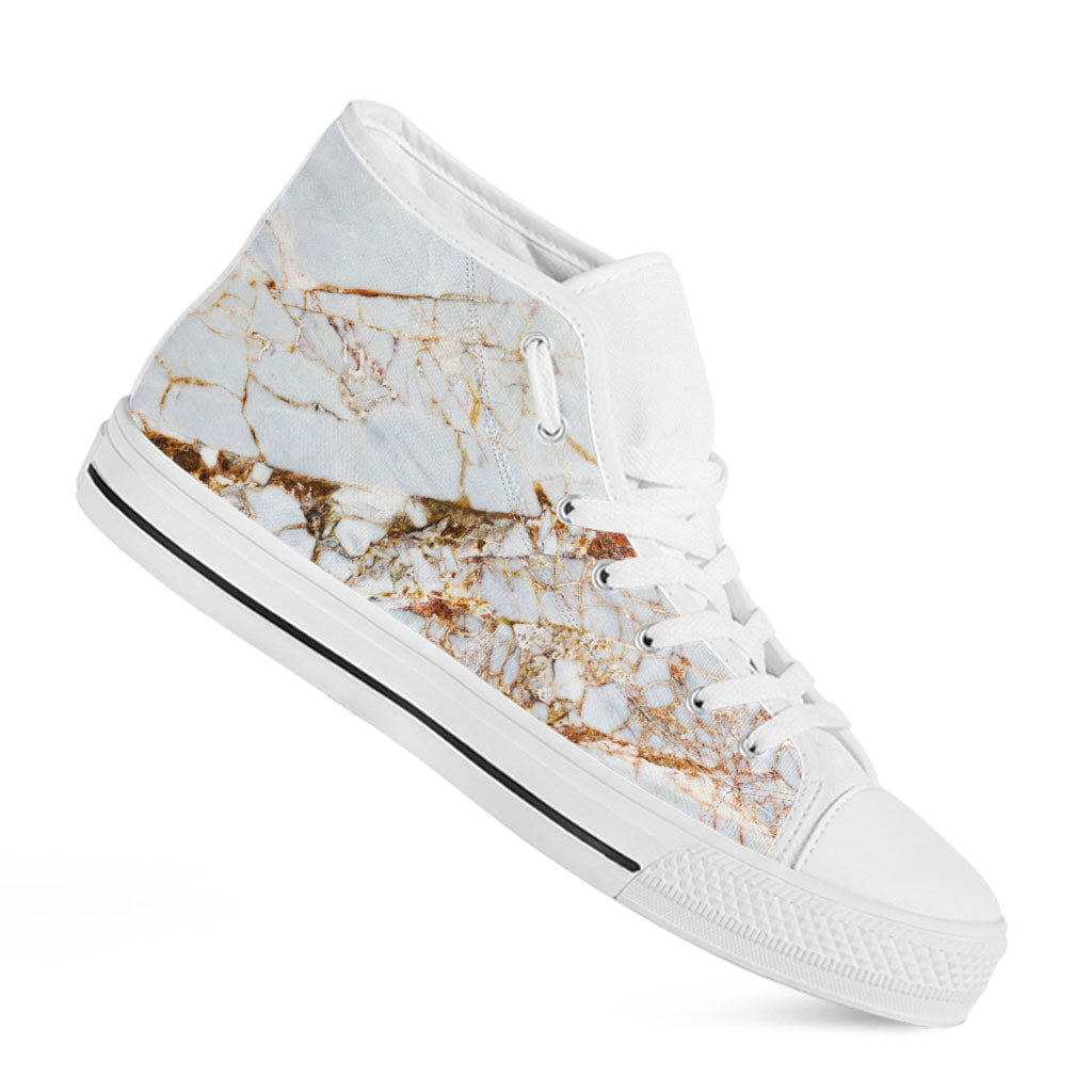 Are you looking for unique sneakers? Check our White Gold Grunge Marble Print White High Top Sneakers on GearFrost. Our sneakers are handcrafted to the highest quality standards and made-to-order for you!