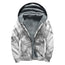 White Gray Marble Print Sherpa Lined Zip Up Hoodie