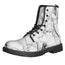 Step out with confidence in the White Gray Scratch Marble Print Lace-Up Boots. Built with a 100% vegan PU leather upper and a durable rubber outsole, these lace-up boots balance everyday comfort with reliable traction—great for daily wear without overpromising performance.