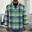 White Green And Blue Buffalo Plaid Print Men's Shirt Jacket