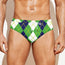 Are you looking for unique men's swim briefs? Check our White Green And Navy Argyle Print Men's Swim Briefs on GearFrost. Our swim briefs are handcrafted to the highest quality standards and made-to-order for you!