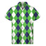 White Navy And Green Argyle Print Men's Short Sleeve Shirt