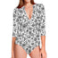 White Paisley Bandana Pattern Print Long Sleeve Swimsuit