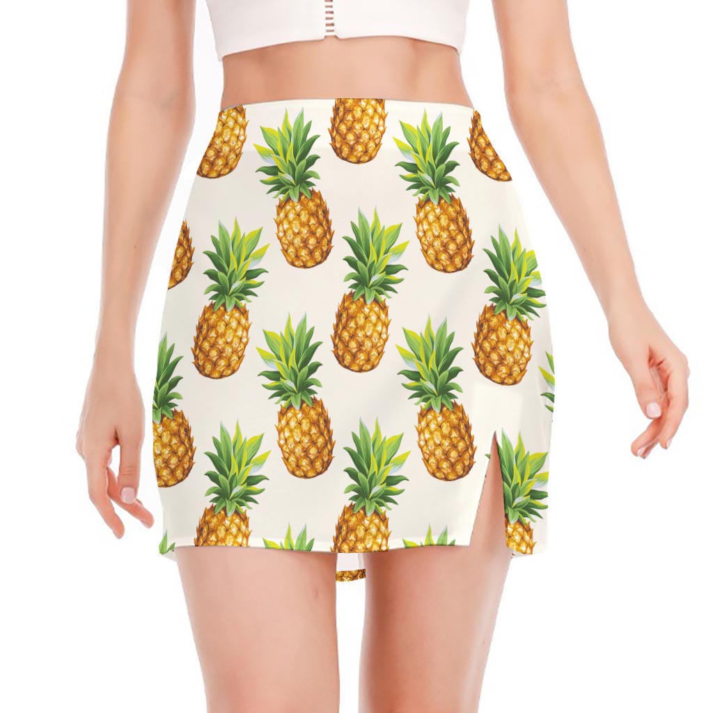 Are you looking for unique mini skirts? Check our White Pineapple Pattern Print Side Slit Mini Skirt on GearFrost. Our skirts are handcrafted to the highest quality standards and made-to-order for you!