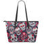 White Red Sugar Skull Pattern Print Leather Tote Bag With Zipper