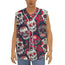 White Red Sugar Skull Pattern Print Sleeveless Baseball Jersey