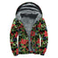 Xmas Poinsettia Pattern Print Sherpa Lined Zip Up Hoodie
