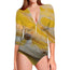 Yellow And White Python Snake Print Long Sleeve Swimsuit