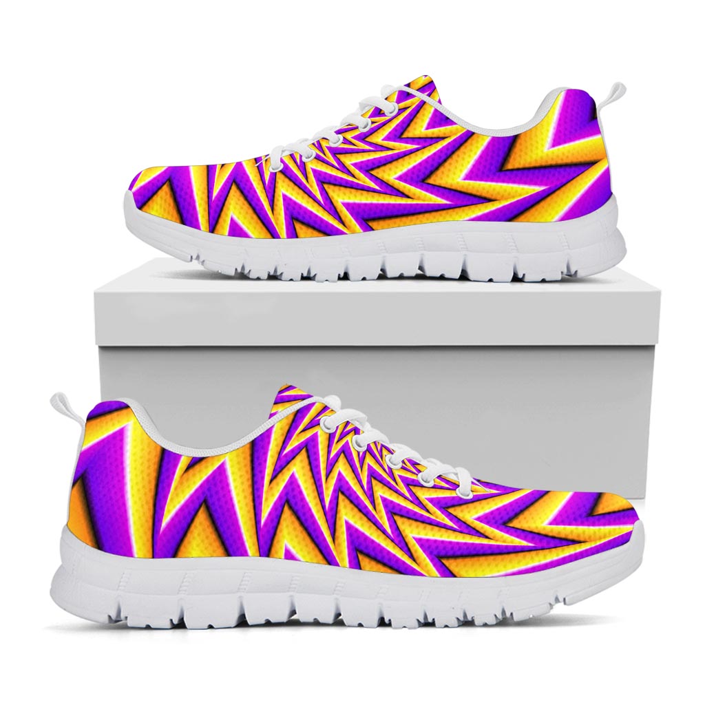 Are you looking for unique shoes? Check our Yellow Big Bang Moving Optical Illusion White Running Shoes on GearFrost. Our shoes are handcrafted to the highest quality standards and made-to-order for you!