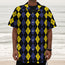 Are you looking for unique textured short sleeve shirts? Check our Yellow Black And Blue Argyle Print Textured Short Sleeve Shirt on GearFrost. Our shirts are handcrafted to the highest quality standards and made-to-order for you!
