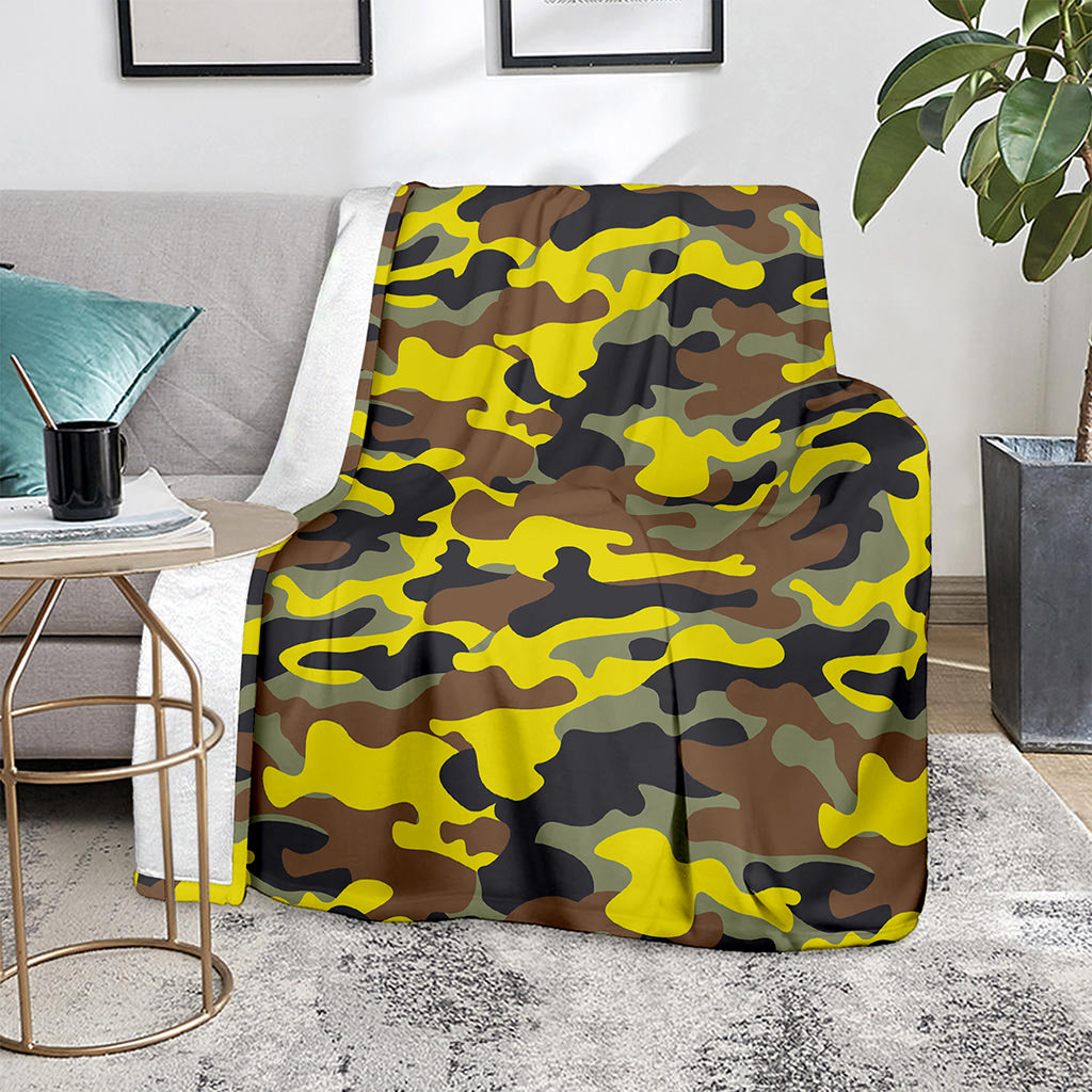 Are you looking for unique blankets? Check our Yellow Brown And Black Camouflage Print Blanket on GearFrost. Our blankets are handcrafted to the highest quality standards and made-to-order for you!