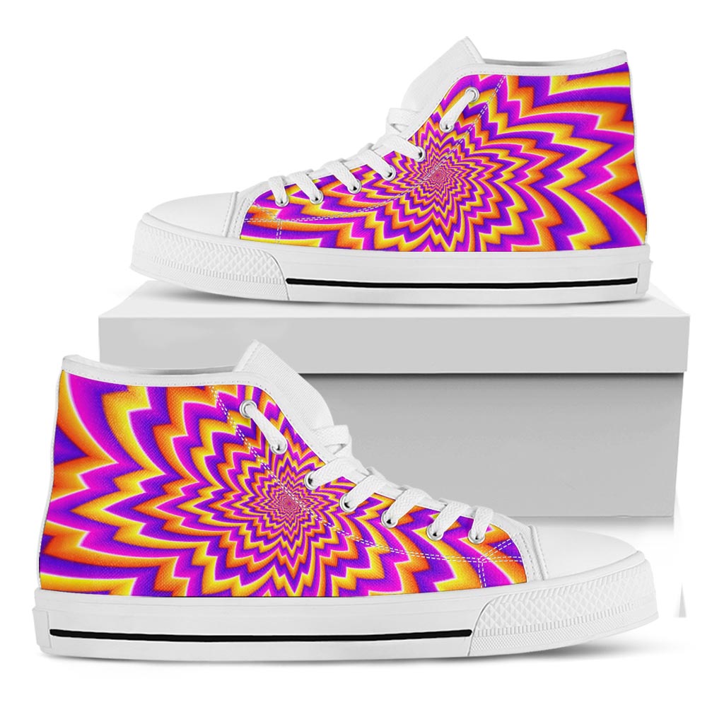 Are you looking for unique sneakers? Check our Yellow Expansion Moving Optical Illusion White High Top Sneakers on GearFrost. Our sneakers are handcrafted to the highest quality standards and made-to-order for you!