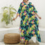 Yellow Orchid Pattern Print Silk V-Neck Kaftan Dress