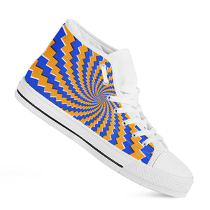 Are you looking for unique sneakers? Check our Yellow Spiral Moving Optical Illusion White High Top Sneakers on GearFrost. Our sneakers are handcrafted to the highest quality standards and made-to-order for you!