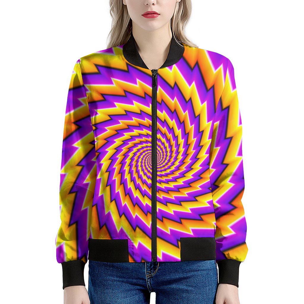 Make a bold statement with the sleek and stylish Yellow Twisted Moving Optical Illusion Women's Bomber Jacket. This women's bomber jacket combines a classic silhouette with modern design, offering the perfect mix of fashion and functionality. Whether you're layering it for a chilly day or adding a finishing touch to your outfit, this jacket is designed to keep you comfortable while elevating your style.