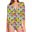 Zigzag Pineapple Pattern Print Long Sleeve Swimsuit